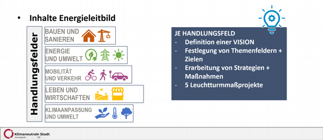Zentrale Elemente des Projekts sind die Einbindung relevanter Stakeholder, die Erarbeitung einer langfristigen Vision sowie die Einrichtung eines Monitoringsystems zur Erfolgskontrolle. Der Klimaneutralitätsfahrplan versteht sich als wesentlicher Baustein für eine zukunftsfähige Stadtentwicklung.