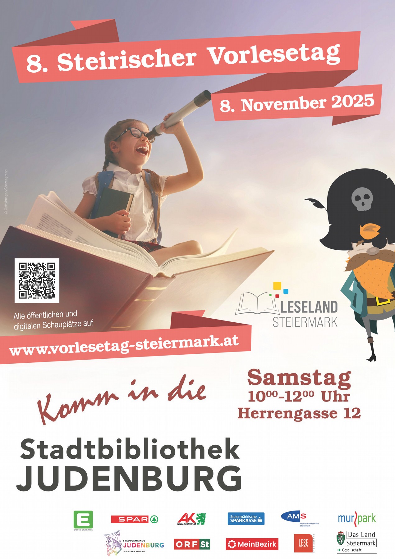 Der 8. Steirische Vorlesetag wurde aufgrund des Terroranschlages an der Grazer Schule auf den 8. November 2025 verschoben. Auch in der Stadtbibliothek Judenburg wurde am Steirischen Vorlesetag aus spannenden, starken, tierischen, komischen fantastischen – kunterbunten Geschichten vorgelesen. Ein großes Dankeschön gilt den Vorleser:innen sowie den Eltern und Kindern, die diesen Vorlesetag besucht haben.