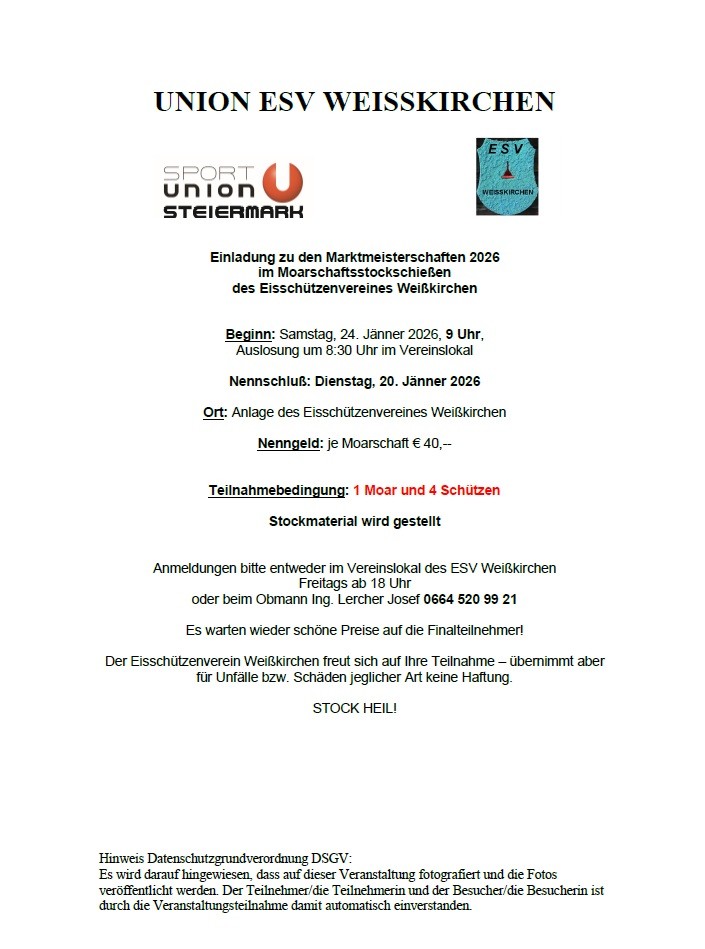 Marktmeisterschaften im Eisschießen - ESV Weißkirchen