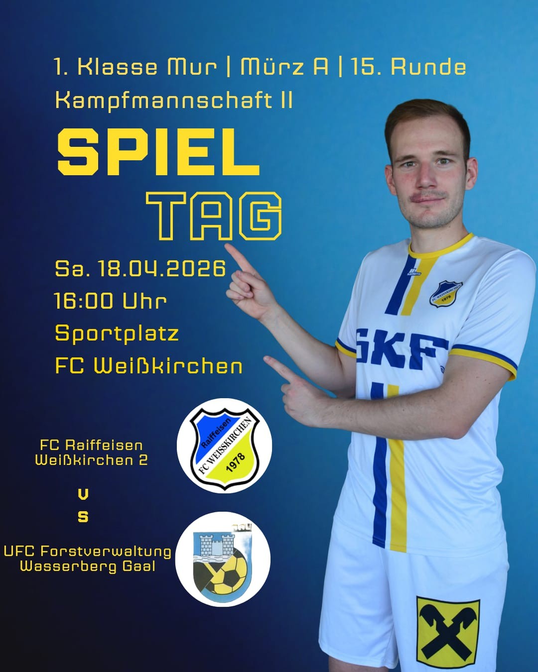 Samstag, 18.04.2026, 16.00 Uhr, Sportplatz FC Raiffeisen Weißkirchen