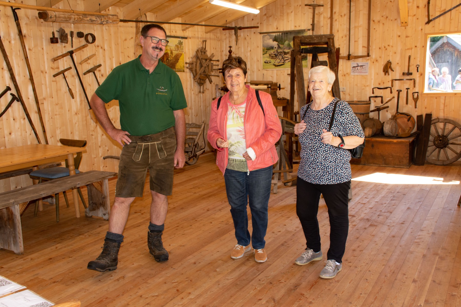 Mit dem komfortablen Luxusreisebus der Firma Tieber war bereits am frühen Vormittag das Holzknechtmuseum Lanau erreicht, dort konnte das Museum auf eigene Faust erkundet werden. Für Fragen waren ehrenamtliche Vertreter des Museums vor Ort. Anschließend ging es zum Gasthof Freinerhof, wo ein köstliches Mittagessen die Senior*innen und Begleitpersonen erwartete.