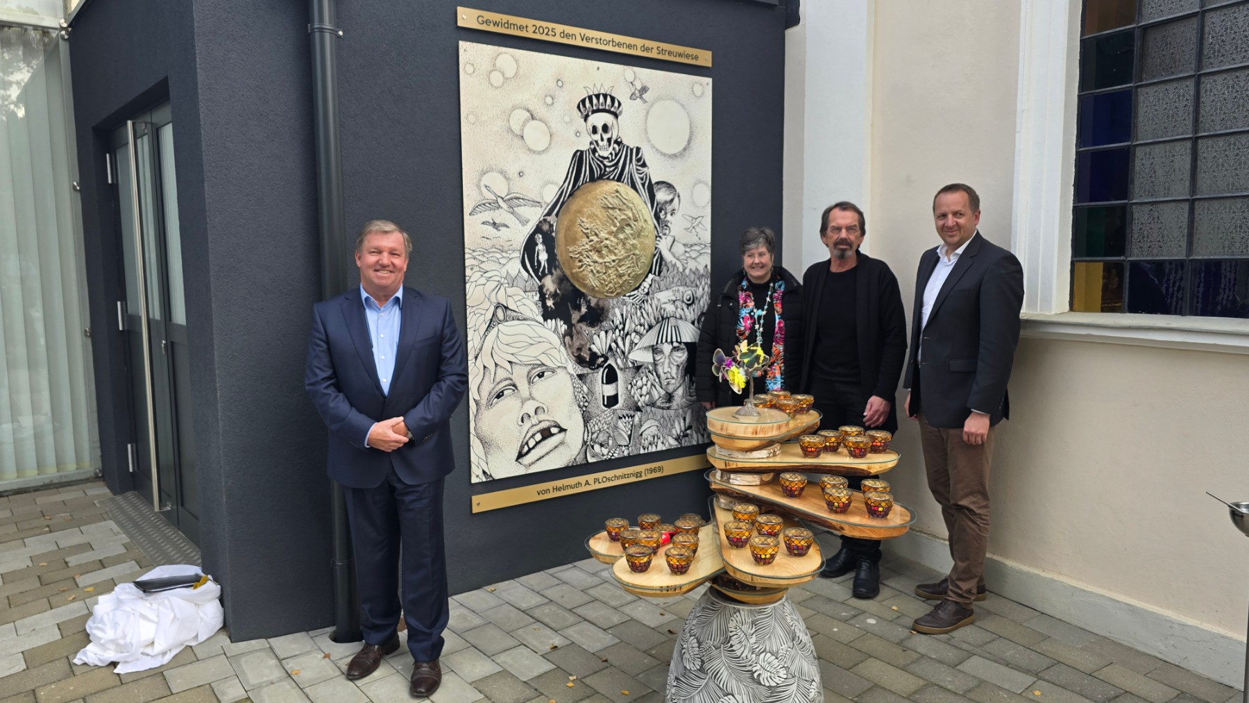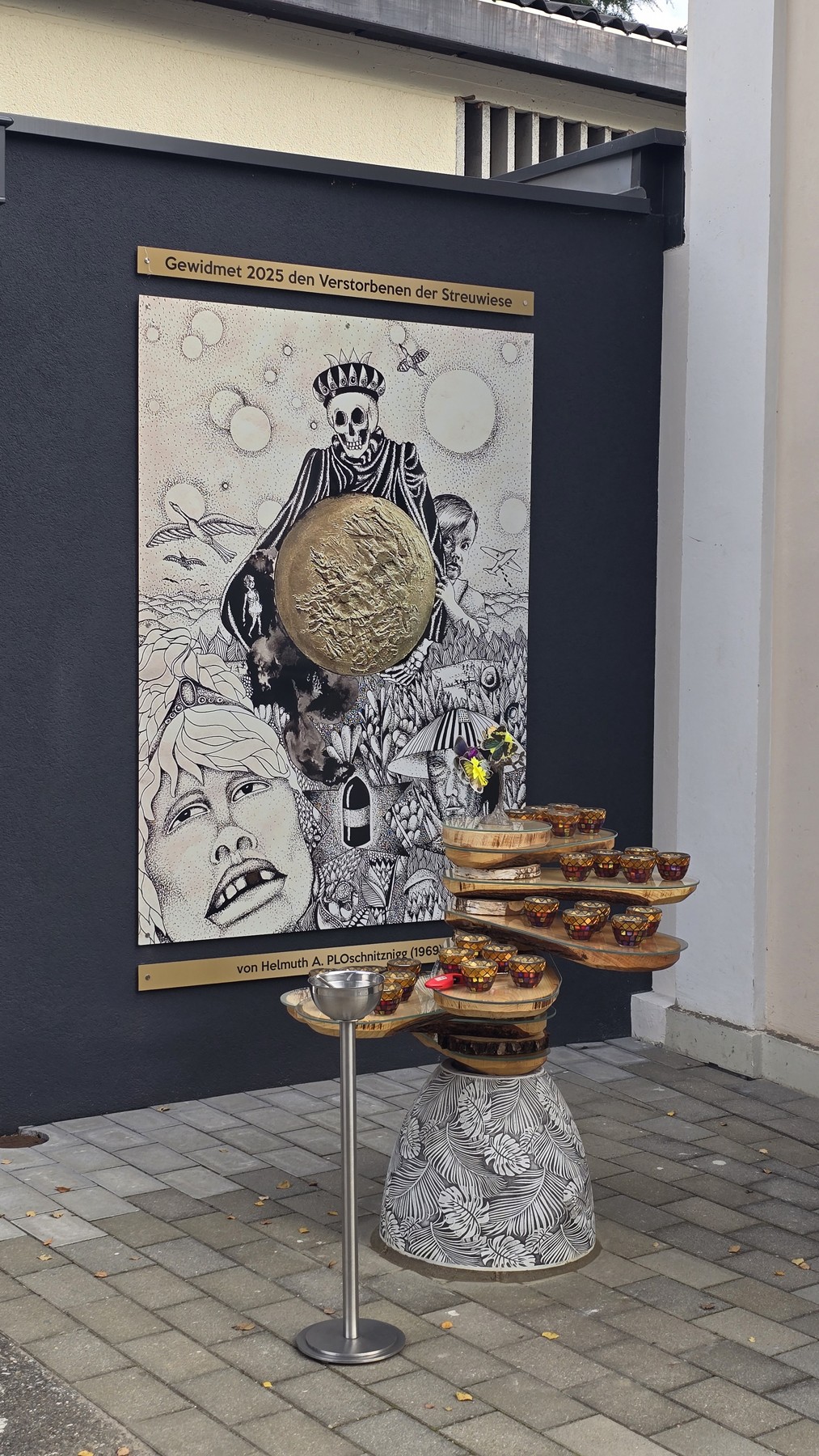 PLO widmet sein Totentanzmotiv den Verstorbenen auf der Streuwiese am Stadtfriedhof
