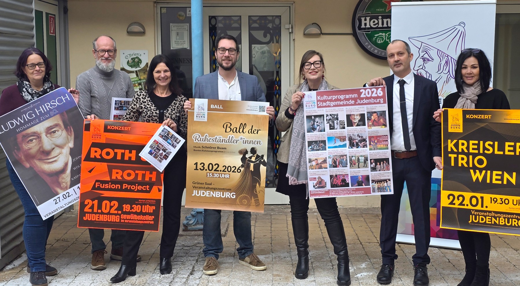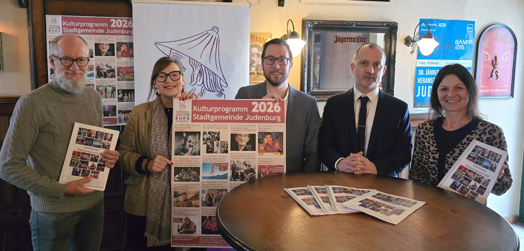 …im Judenburger Kulturjahr 2026 wurden von den Kulturverantwortlichen bei der Pressekonferenz im ehemaligen Irish Pub (Hauptplatz 2) präsentiert. Wie gewohnt finden Sie alle laufenden Veranstaltungen in den verschiedensten Medien, den Werbeanzeigern und auf der Startseite der Homepage der Stadtgemeinde Judenburg (www.judenburg.at) oder im Newsletter.