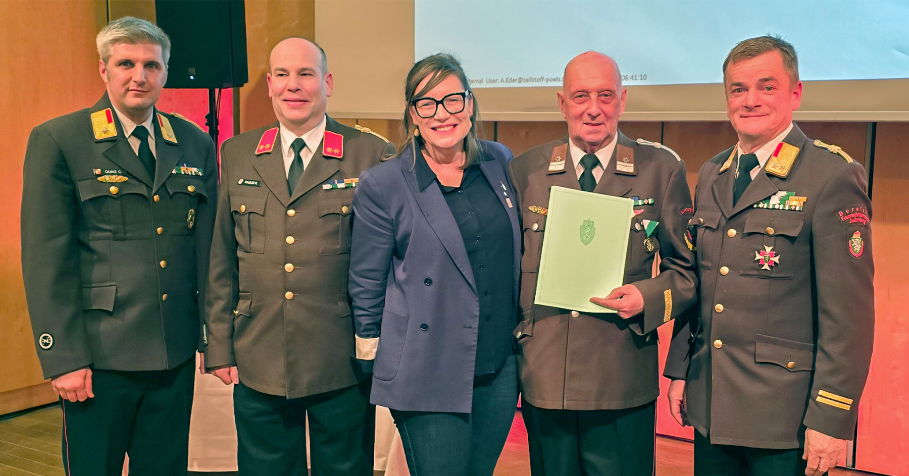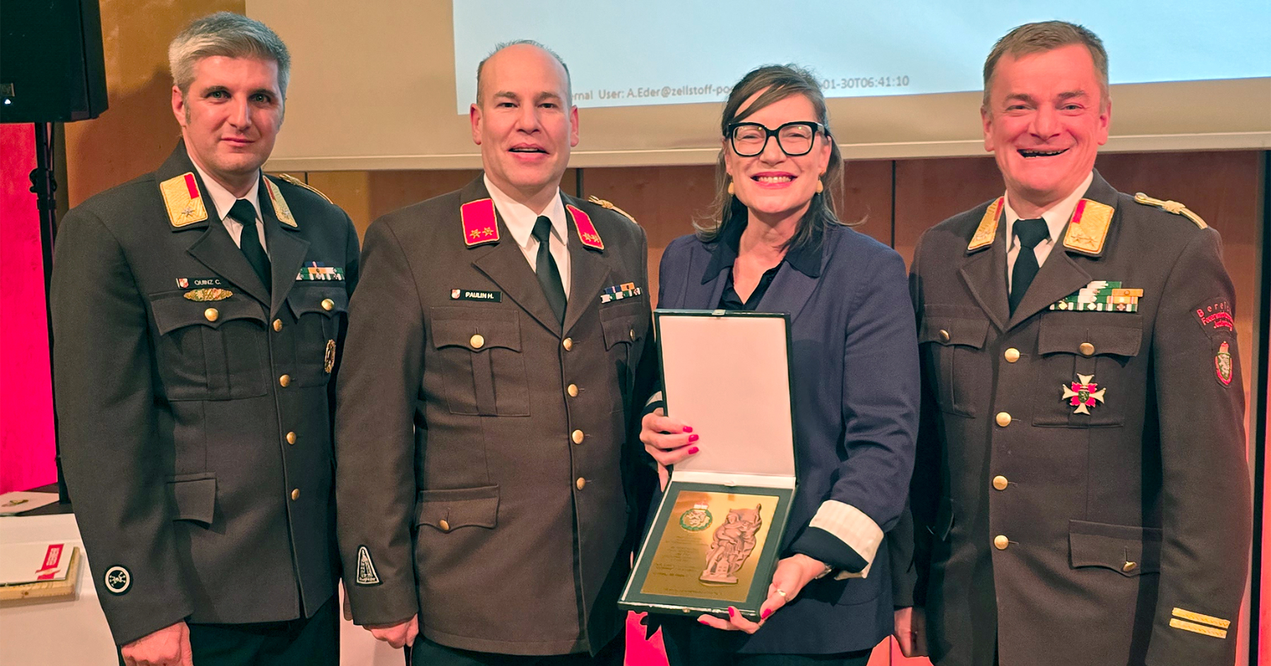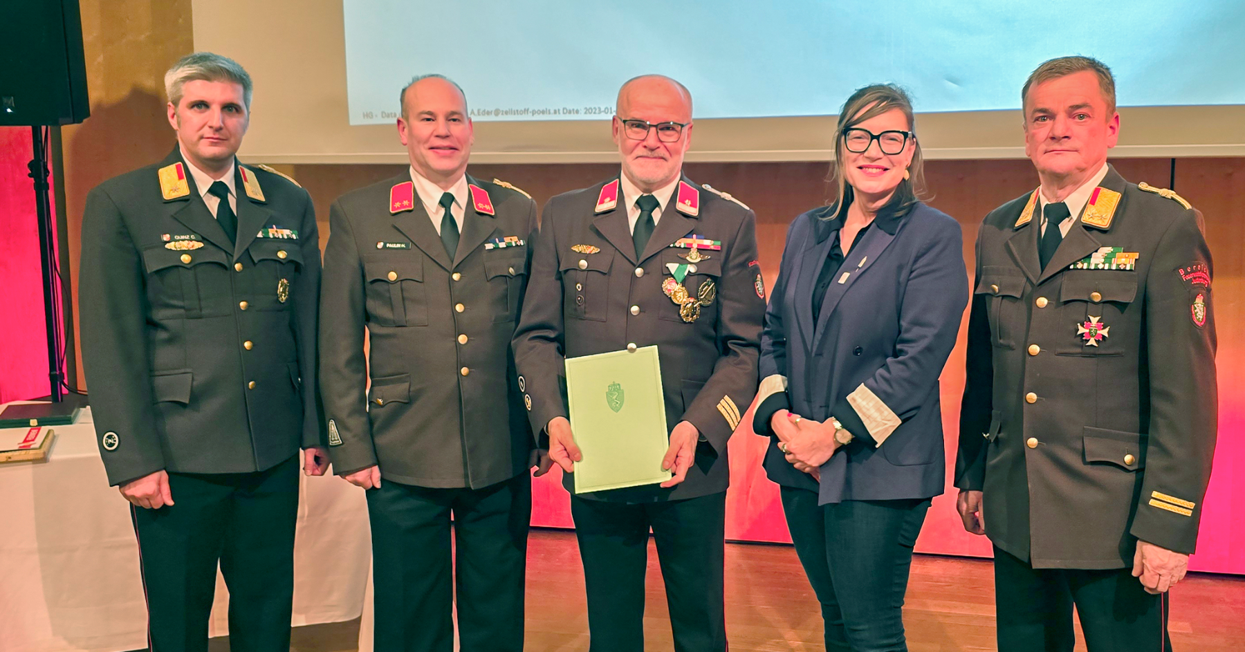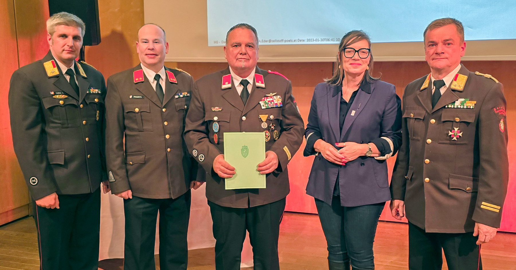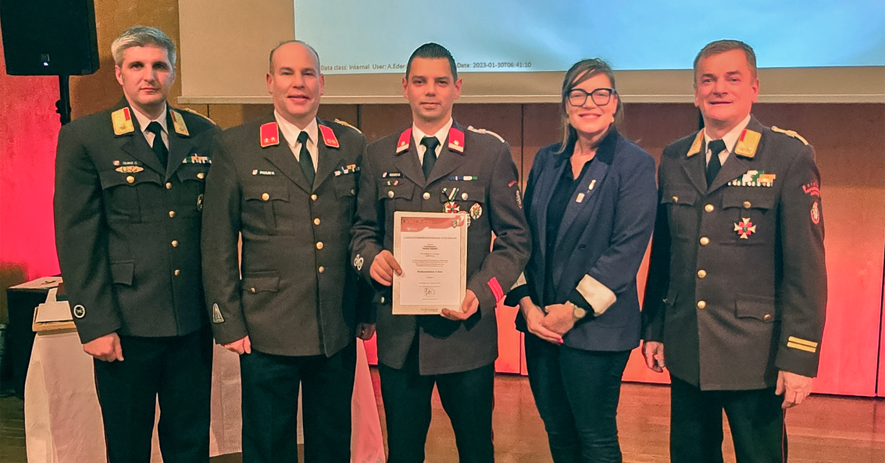 Als besondere Würdigung ihrer Verdienste um das Feuerwehrwesen überreichte Kommandant BR Armin Eder der Bürgermeisterin eine Auszeichnung des Landesfeuerwehrverbandes Steiermark.