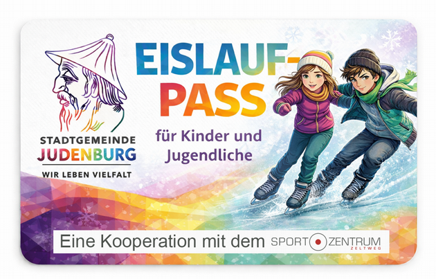 Judenburger Kinder und Jugendliche (bis 16. Jahre) erhalten in der Aichfeldhalle gegen Vorweisen des Judenburger Eislaufpasses eine Ermäßigung auf den Eintrittspreis für das Eislaufen. Infos und Pass erhalten Sie in den Bürgerservicebüros der Stadtgemeinde Judenburg (Rathaus-Parterre und Murdorf).